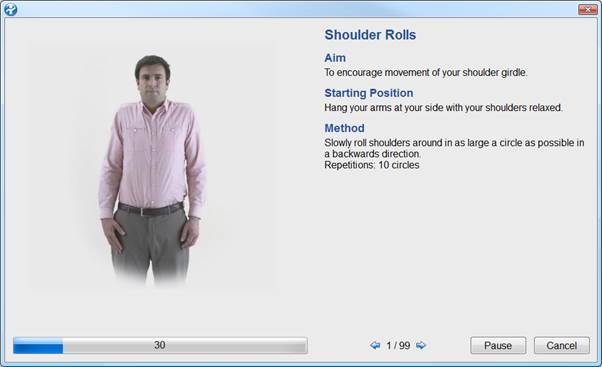 There are 2 types of exercises Video and Animated. The software may be configured for either type