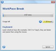 Being activity based, WorkPace provides break reminders only when needed. These include: