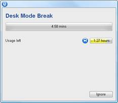 Desk Mode Timer. This window will appear after a period of inactivity on the keyboard or mouse and servers as a good reminder to take a break from non computer related activities.